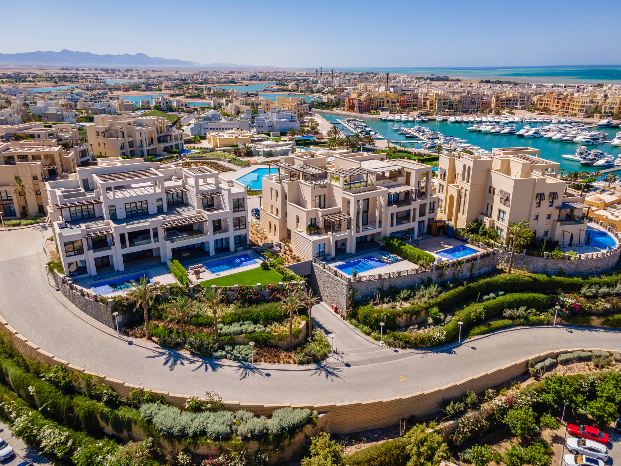 The project sets the tone for the most distinctive living experience in El Gouna, presenting contemporary luxury of indoor and outdoor spaces, extravagant views of the Marinas and open sea and dedicated service culture. Aboutig Hill residents are vowed utmost privacy, exclusive views and care of the highest degree. Being a part of this elevated plateau provides access to a celebrated El Gouna coastal lifestyle beyond compare.