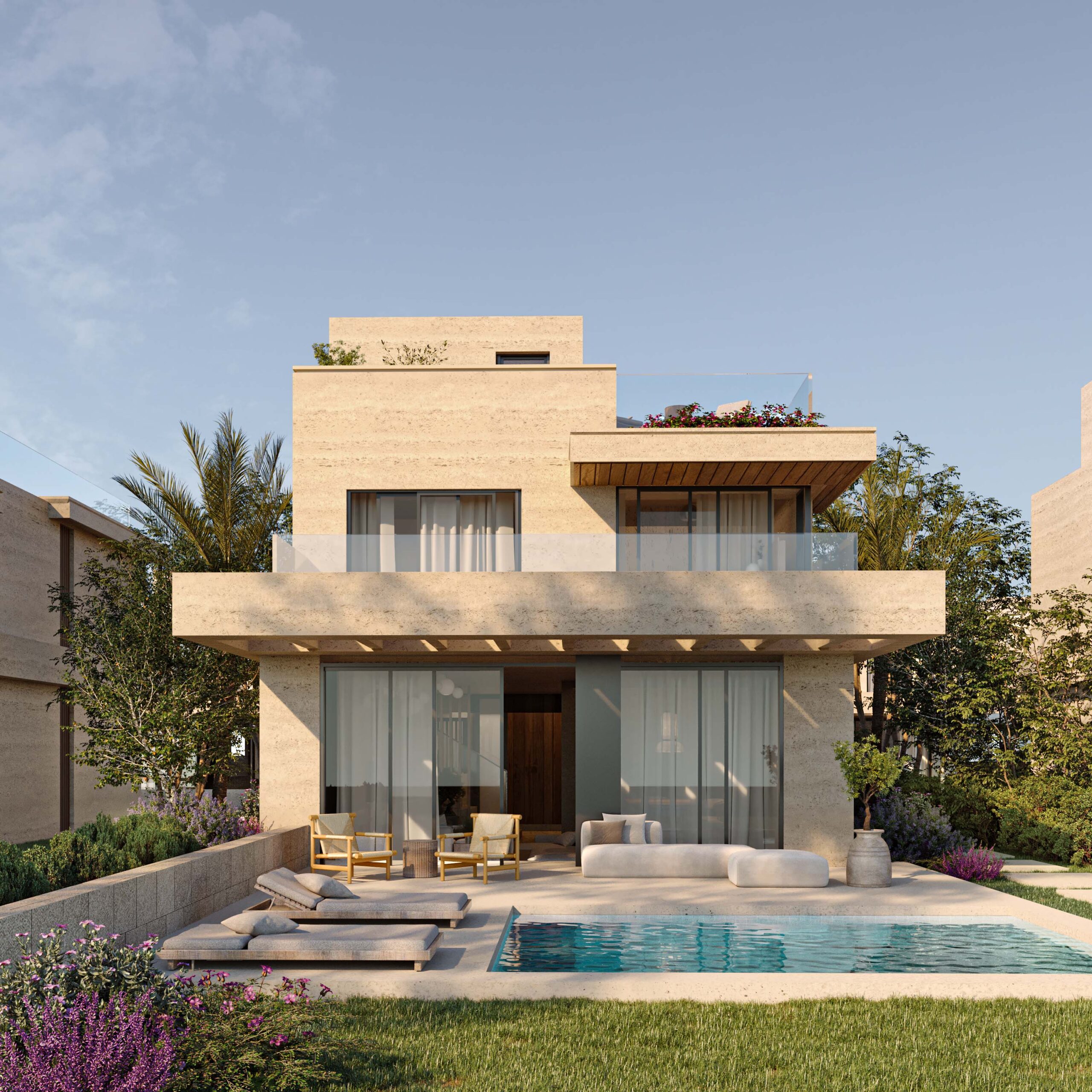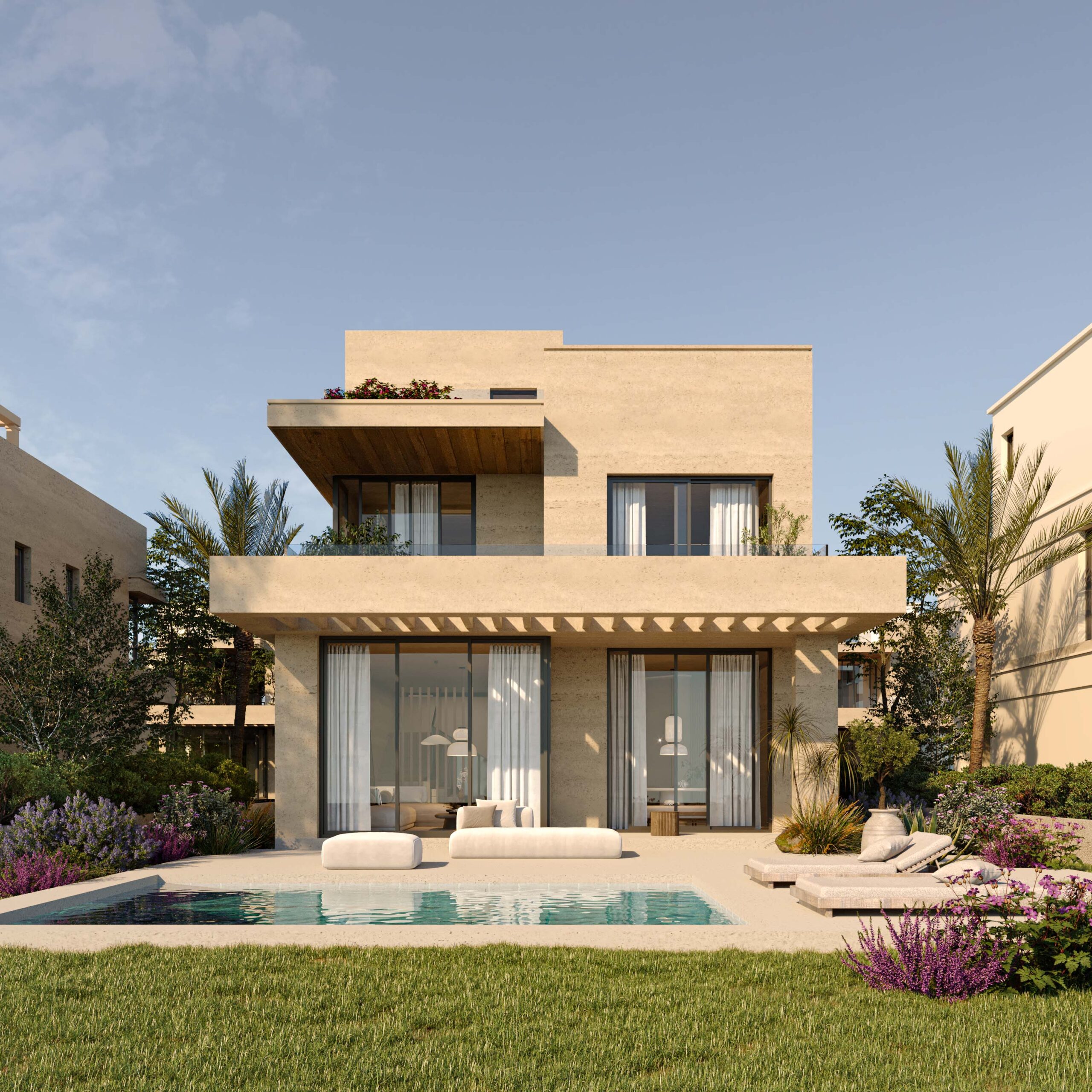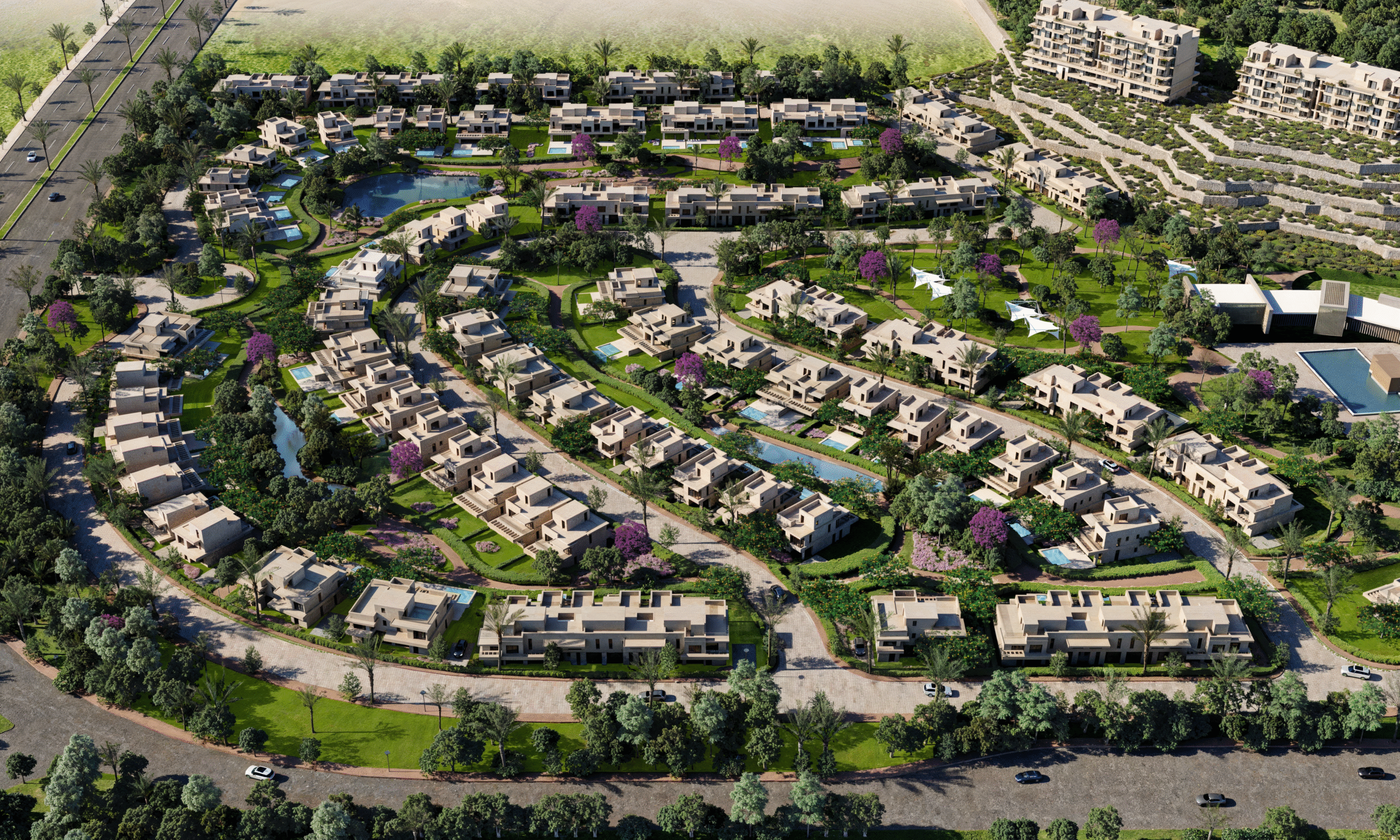 Embracing the site’s natural topography, this mixed-use and residential compound transforms its slopes into opportunities for design innovation. Residences step gracefully along the terrain, maximizing views, privacy, and natural cooling.